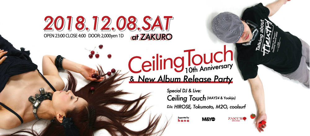 今年でデビュー10周年を迎えた和製ハウスユニット"Ceiling Touch"のニューアルバムリリースを記念して、東心斎橋ZAKUROにてパーティーを開催!!