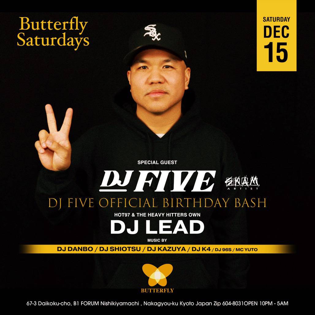 BUTTERFLY SATURDAYS Guest DJ FIVE (SKAM ARTIST)