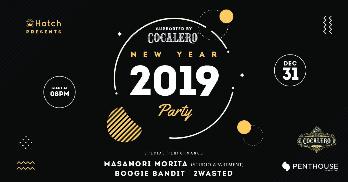 2018.12 31 DEC Countdown PARTY 2019 Supported by Cocalero HOUSE TECH HOUSE HIPHOP 0 Shares Facebook Twitter google Line 実券をお買い求めの方はこちらからご購入頂けます。 ¥ DATE: 2018-12-31 MON OPEN: 20:00 VENUE: PRICE: 2000 LINE UP: MASANORI MORITA, Tha Boogie Bandit, 2Wasted, DJ Sicks By Proxy
