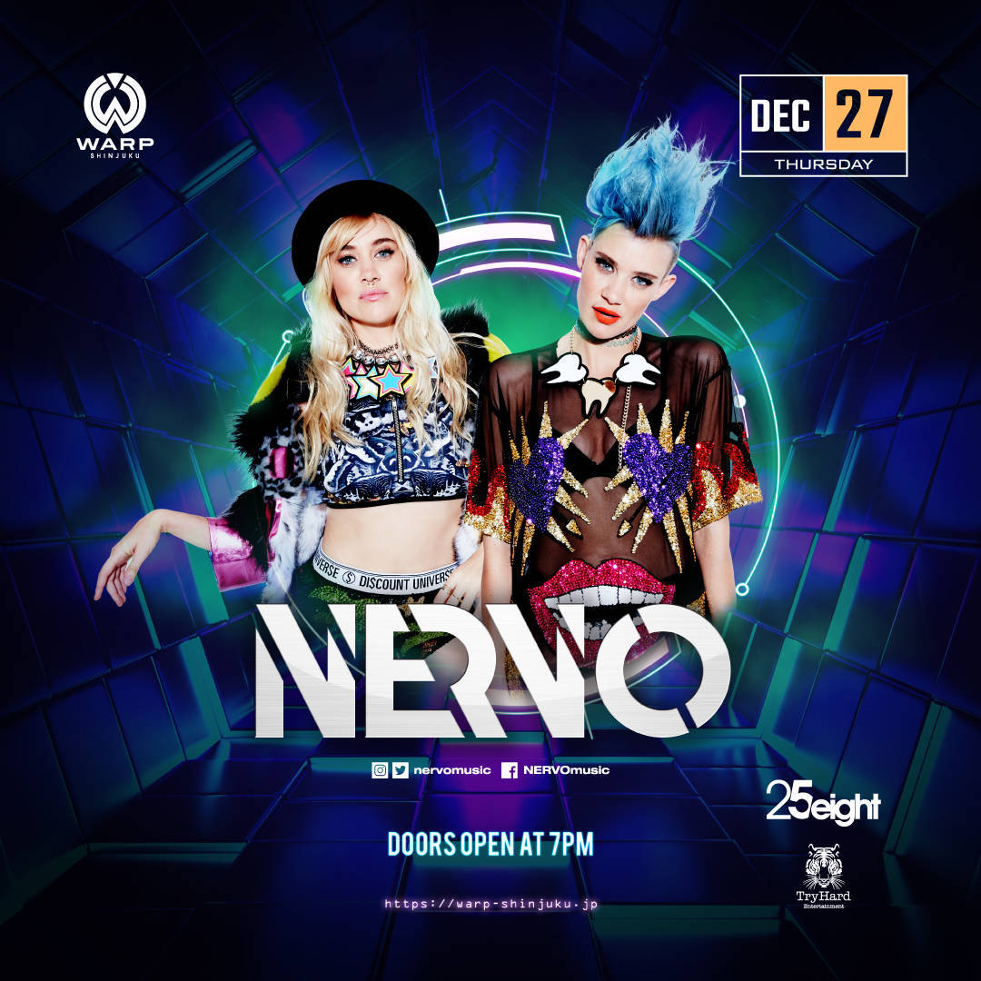 年末を目前にフィメールDJ界の頂点がお出ましだ。DJにプロデュース、モデルまでこなすマルチな才能を持つ美人EDMデュオ、NERVO (ナーヴォ)。世界をまたにかける2人だが日本の独創的なファッションへの関心が非常に高く、moussyをはじめ多くの日本ショップにプライベートでも訪れている。また西野カナや安室奈美恵への楽曲提供、植野有砂をフィーチャリングした楽曲制作など日本の音楽シーンにおいても関りが深い。日本のアート文化を嗜むQueen of DJはどのようなパフォーマンスを魅せてくれるのか、大型フェスにも引けを取らないエンターテイメント空間が12/27のWARPにはあるだろう。