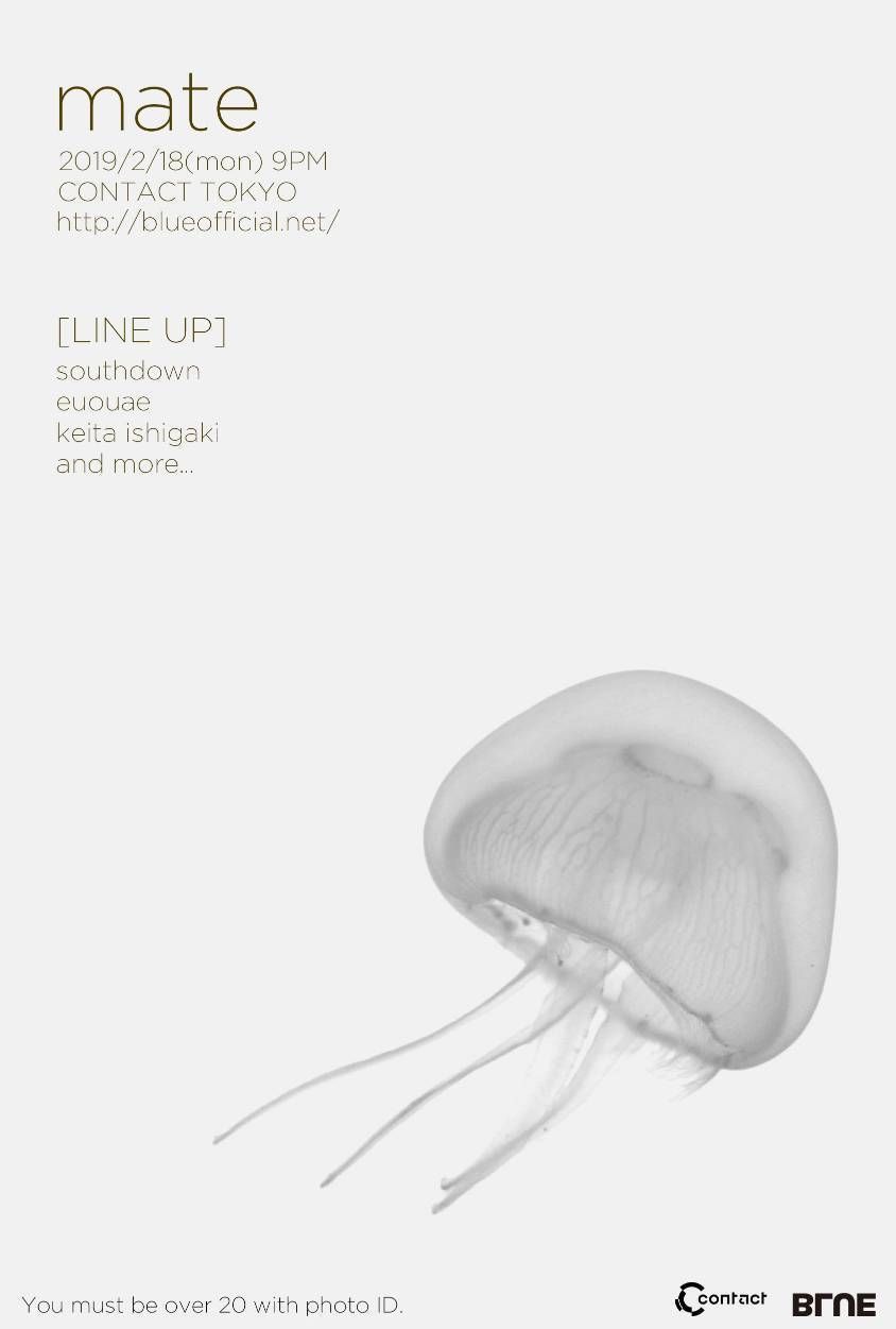 BLUEは、テクノやダブなどを中心とするライヴを繰り広げ自らの音楽を“業の深い音楽”と称するsouthdownを中心に、DJ/ギタリスト/フォトグラファー/ビデオプロデューサーなど、多岐にわたり活動するアーティスト達が所属する。mateではDJやライヴを主としたクラブイベントのほかに、カフェを利用した写真の展示イベントなども開催している。