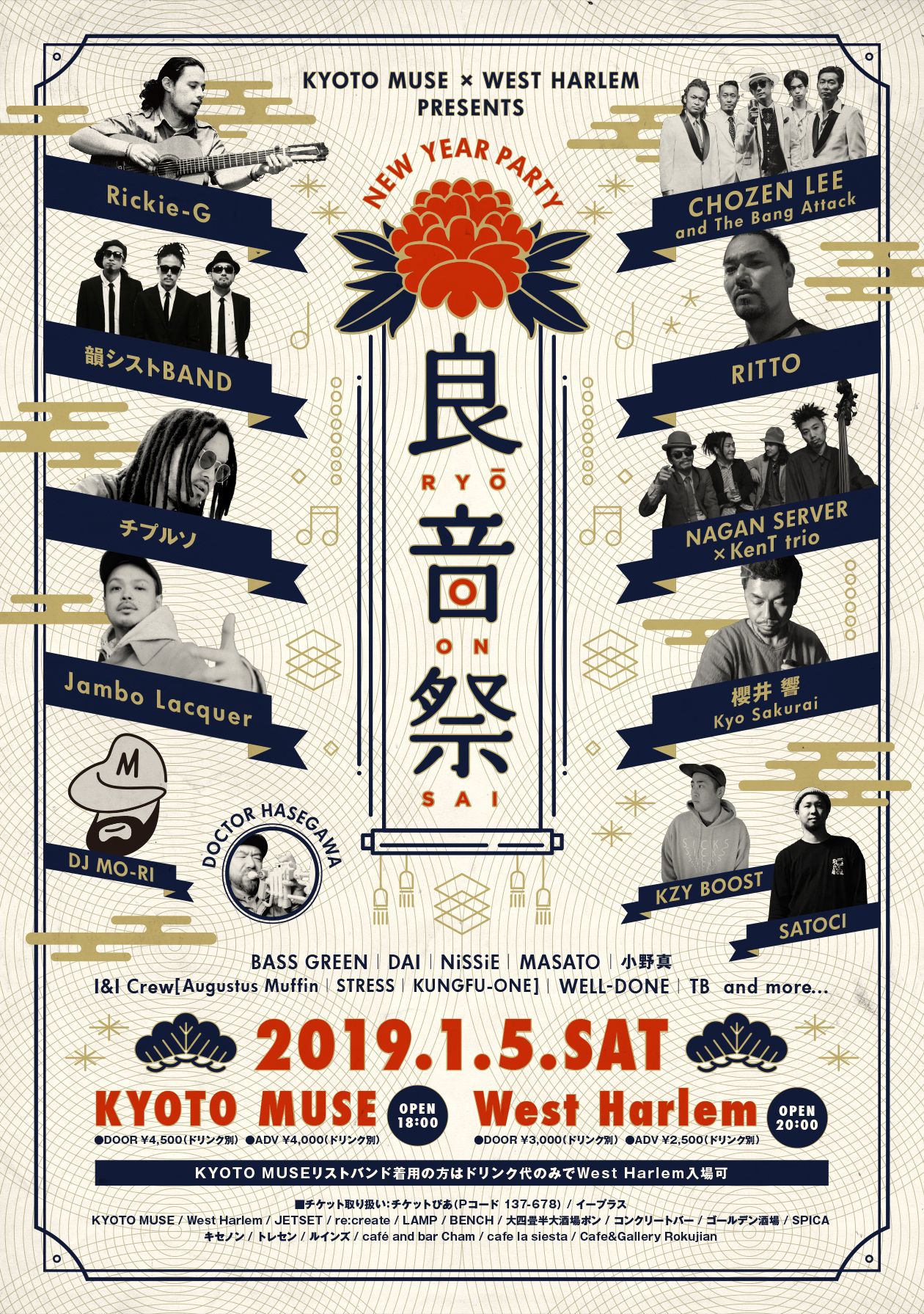KYOTO MUSEとWEST HARLEM共同主催の新年会。素晴らしい出演者たちと共に2019年の音はじめ踊りはじめに是非♫。