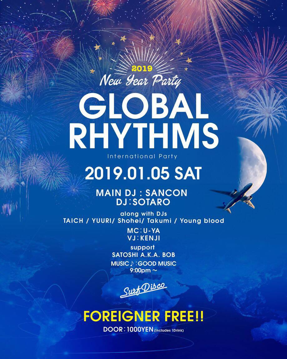 2019.01 05 JAN GLOBAL RHYTHMS "New Year Party" HIPHOP OTHER REGGAE 0 Shares Facebook Twitter google Line 実券をお買い求めの方はこちらからご購入頂けます。 ¥ DATE: 2019-01-05 SAT OPEN: 22:00 VENUE: PRICE: 1000yen 1d LINE UP: DJ SANCON