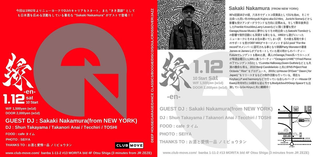 今回は1992年よりニューヨークでDJのキャリアをスタート。また "きき酒師” としても日本酒を広める活動をしている著名な "Sakaki Nakamura" がゲストで登場!!