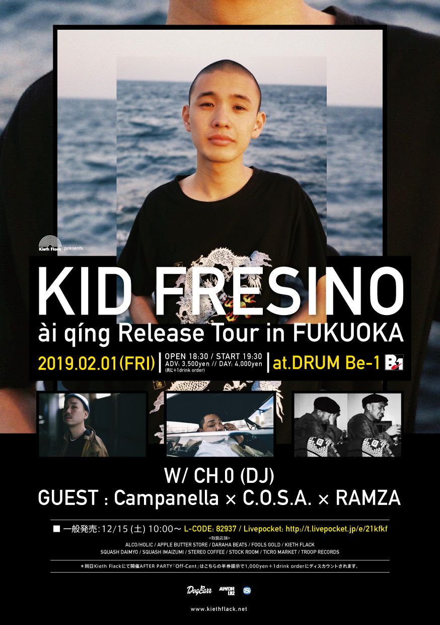 KID FRESINOはDJ CH.0とのLIVE SETを披露、ゲストLIVEには Campanella × C.O.S.A. × Ramza を迎える。