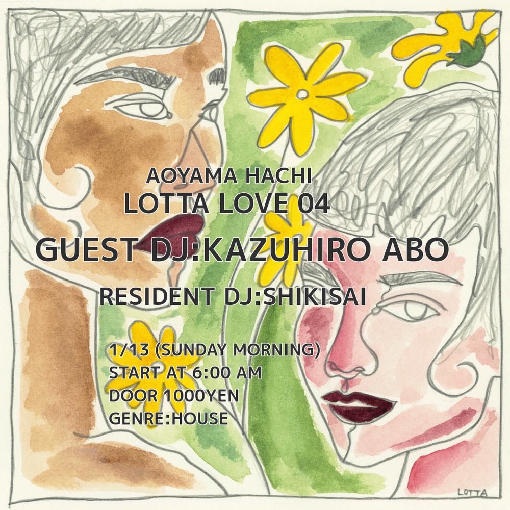 2019.01 13 JAN Lotta Love HOUSE DISCO 0 Shares Facebook Twitter google Line DATE: 2019-01-13 SUN OPEN: 06:00 VENUE: PRICE: DOOR: ¥1000 LINE UP: ■GUEST DJ KAZUHIRO ABO ■RESIDENT DJ SHIKISAI