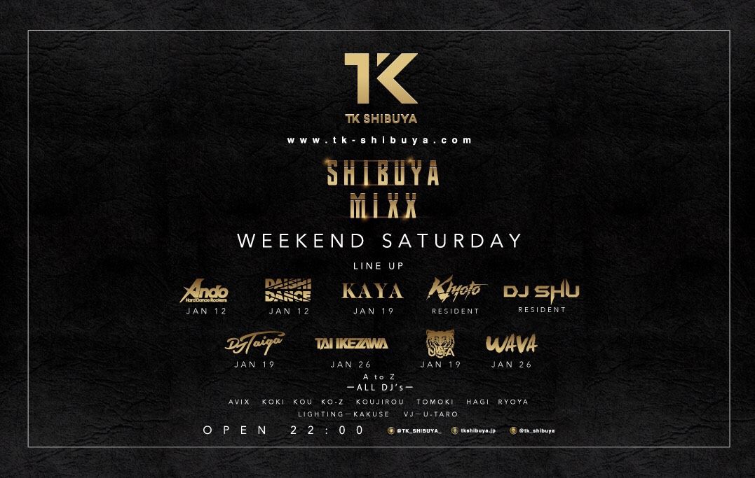 毎週末開催!TK SHIBUYAが誇る週末看板パーティー!