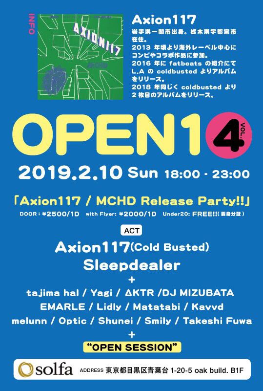 Open1 vol.4 @solfa 中目黒 「Axion117 / MCHD Release Party!!」