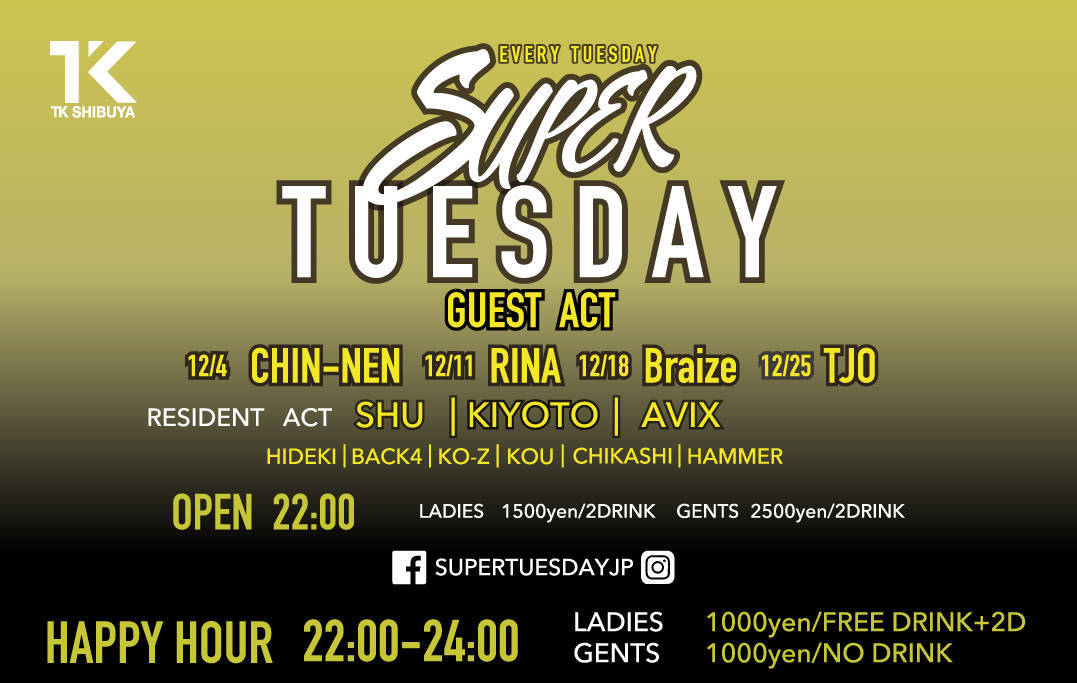 東京の遊びの中心「渋谷」の新たな遊び場「TK SHIBUYA」が、毎週火曜日に開催するパーティー「SUPER TUESDAY」