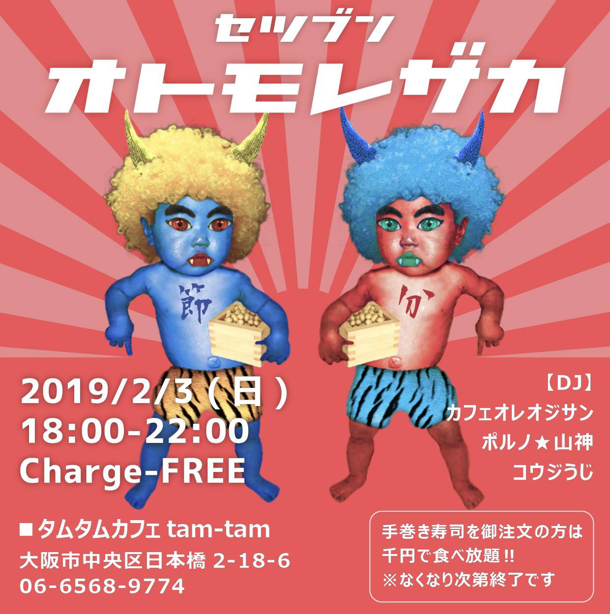 1年振りの『オトモレザカ』!今回も節分に開催です。今年は恵方巻きではなく、タムタム特製手巻き寿司(セルフ手巻きです)◎鬼アーティスト、こうじうじさんの作品「原寸大鬼の皮」の展示もあります☆