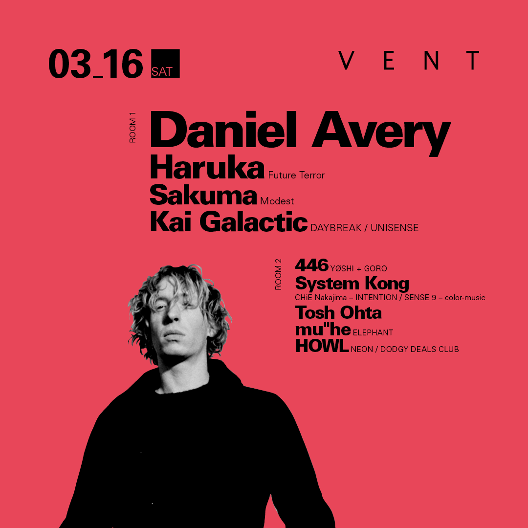 2012年にAndrew WeatherallがTime Out誌にて”いま最も注目すべき新しいDJ”と紹介したことがきっかけで、一躍スターダムを駆け上がったロンドンの新世代テクノシーンの代表格、Daniel Averyが満を持して3月16日のVENTに登場!
