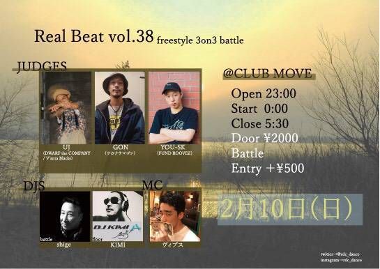 立命館大学ストリートダンスサークル『R.D.C.』がオーガナイズするダンスバトルイベント。FREEで踊れるDANCERを目指そうという目的から始まったREAL BEATも今回で38回目。今回のバトルコンテンツは3on3フリースタイルバトル!今までにないバトルが期待できる!BREAK BEAT,HIPHOP,FUNKを中心とする幅広いジャンルがPLAYされます!