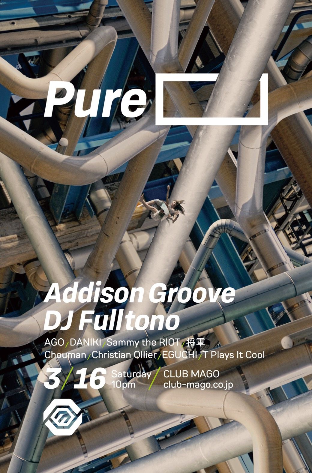 第2回目の「Pure____」は前回のDJ DIEに続いて、ブリストルよりAddison Groove、そしてDJ Fulltonoを迎える。