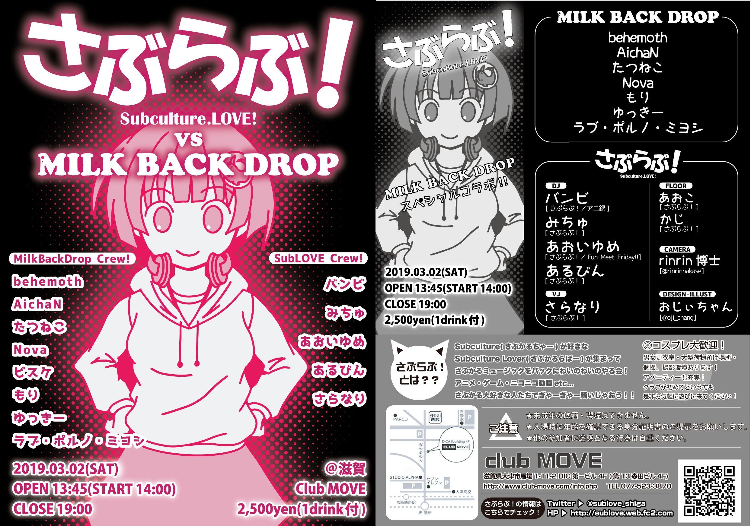 DJ&VJ : バンビ (さぶらぶ!/アニ鍋) / みちゅ (Animelo Beats!!@金沢FunctionSpace/さぶらぶ!) / さらなり (さぶらぶ!) / あおいゆめ (さぶらぶ!/Fun Meet Friday!!/スワロウテイル) / あるびん (さぶらぶ!)