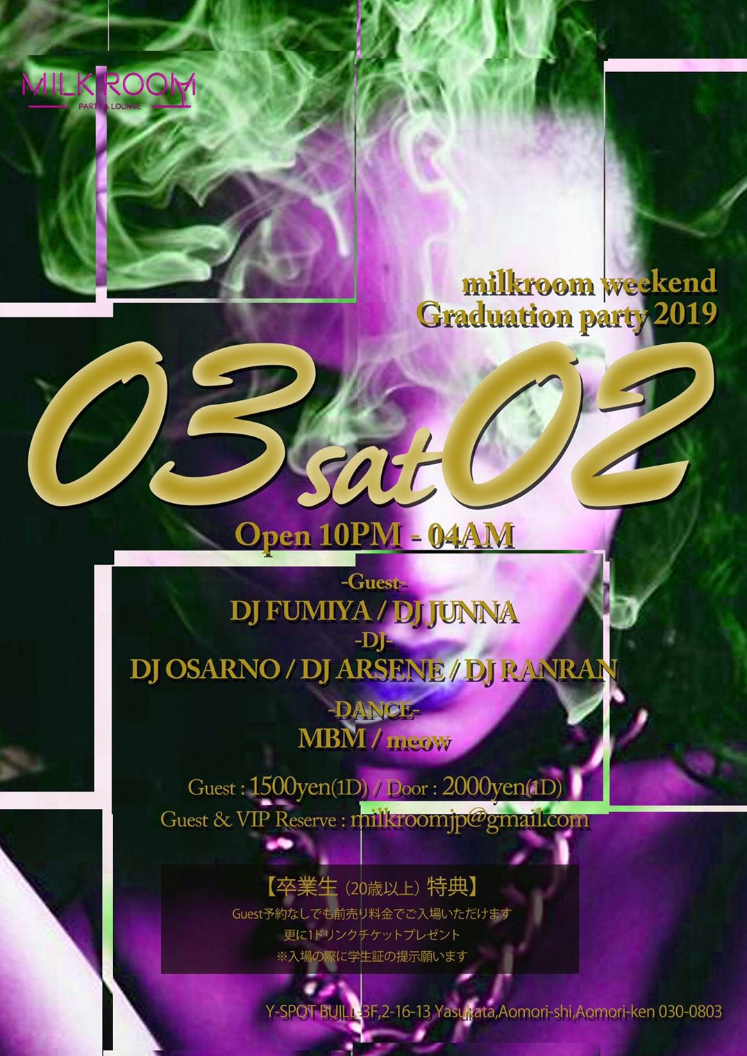 3/2(土)はMILKROOMが卒業を迎えるみなさんにおくるイベント「Graduation Party 2019」!!㊗️