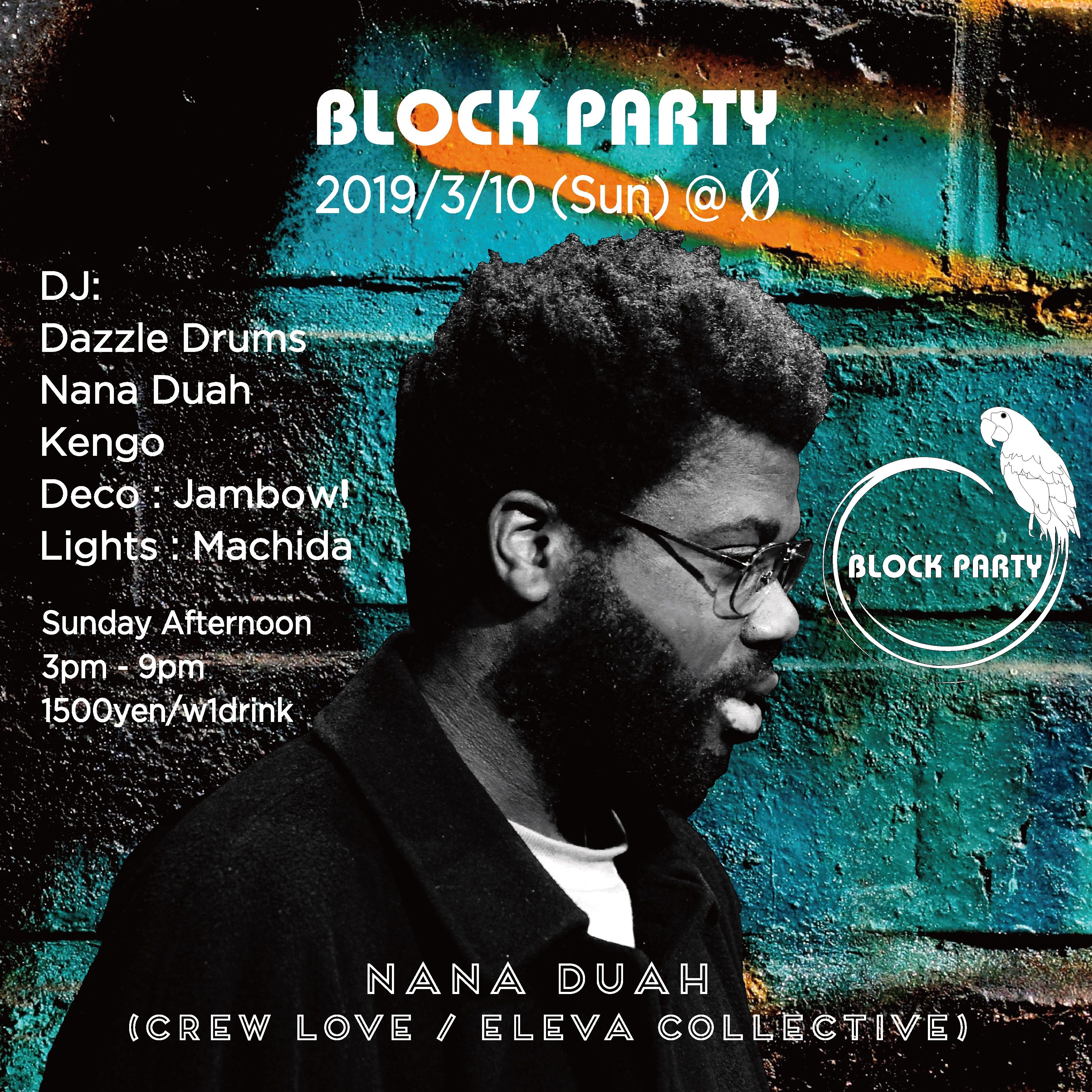 今回のBlock Partyは、Nana Duahをお迎えします。イタリア北部のアンダーグラウンドシーンで育ったNana Duahは、ハウスデュオLowheadsの一人。Soul ClapのCrew LoveやWolf + Lamb Records、Derrick CarterとLuke SolomonのClassic Musicからリリースを重ね、Louie Vegaのアルバム曲"See Some Light"のLowheadsリミックスはHuneeもプレイ。彼らのサウンドスタイルは、ファンキーなディスコアフロビートと80年代と90年代のエレクトロニクス、そしてシカゴのリズムを融合させた純粋にハウスミュージックのグルーヴを持つ。最近、Dazzle Drumsも彼らの曲"Black Paradise"のリミックスをしたので、一緒にパーティ出来る事が嬉しいです!皆さんと少しでも音楽を通じて繋がることを楽しみにしています。