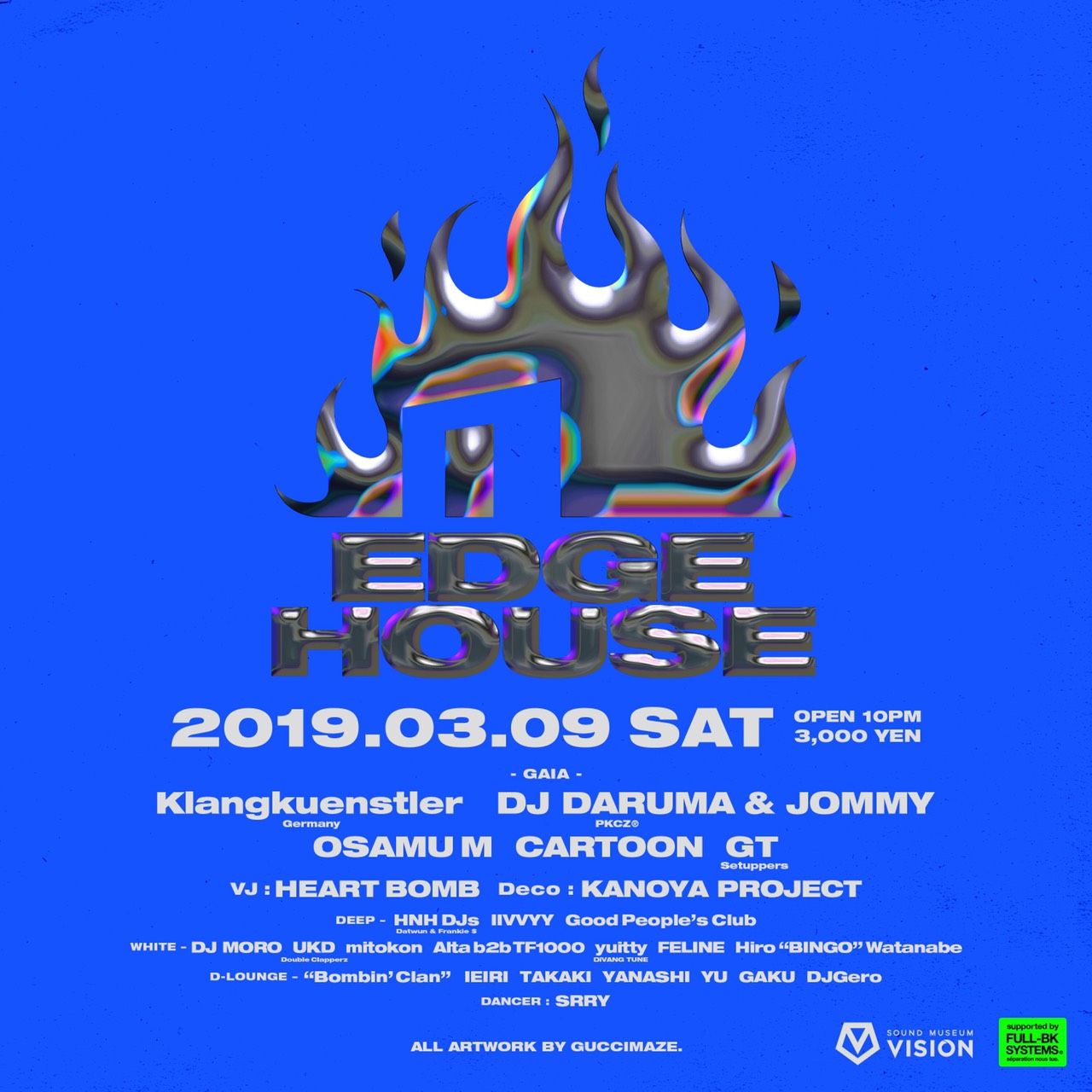 SOUND MUSEUM VISION 毎週土曜レギュラープログラム。現在進行形のHOUSE/TECH HOUSEを軸に、シーン最前線で活躍中の ”エッジの効いた” ゲストとレジデントのDJ DARUMA(PKCZ®)&JOMMYが最新ハウスグルーヴでガッチリとメインフロアをロック中!
