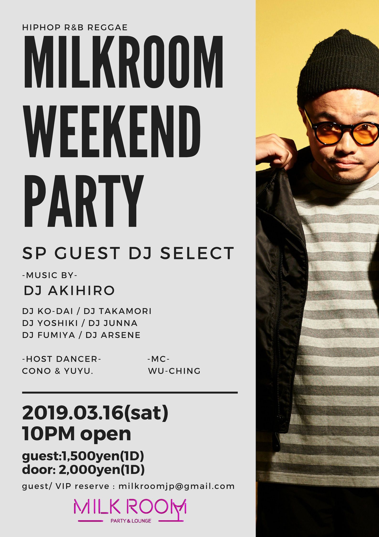 - 3/16(sat) 10PM open 【MILKROOM Weekend Party】