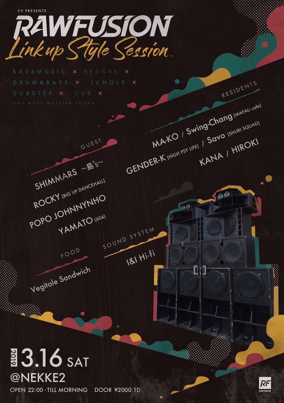 DRUM & BASSを軸にBASS MUSICのPartyとしてさらなる進化と発展を目指すRAWFUSION。 今回はLink up Style Sessionと題しBASS MUSICとの関わりも強いREGGAE CultureをFeature !! REGGAEをルーツに、それを独自のPlayとして体現し活躍中のGuest 陣を迎え入れてのSession !