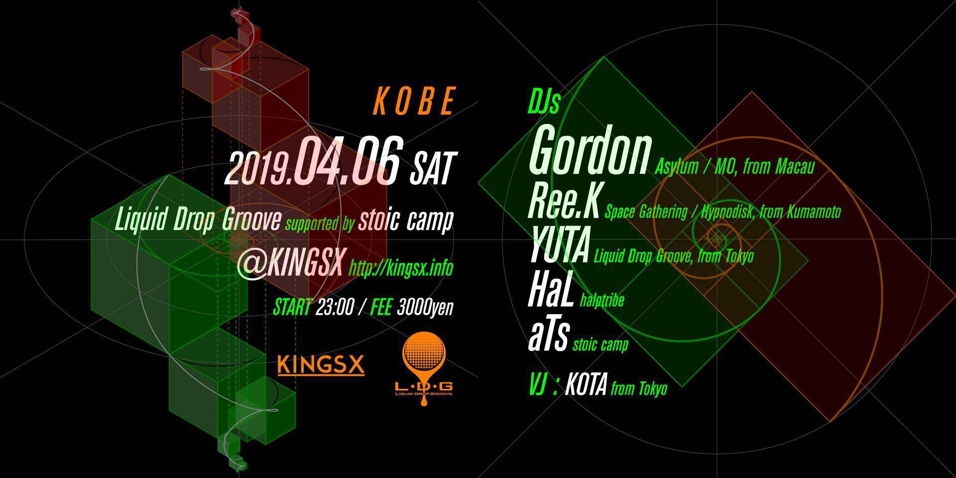 4/6(土)、マカオのアンダーグラウンドテクノシーンをリードするGordonと今年に入りリリースされた『Early Tracks 1』『DELTA 03/Daydreaming EP』が話題を呼んでいるREE.Kが神戸KINGSXに登場!地元神戸のテクノシーンを引率するHaLと、YUTAの盟友aTsの分厚いサポート元の、開催決定!