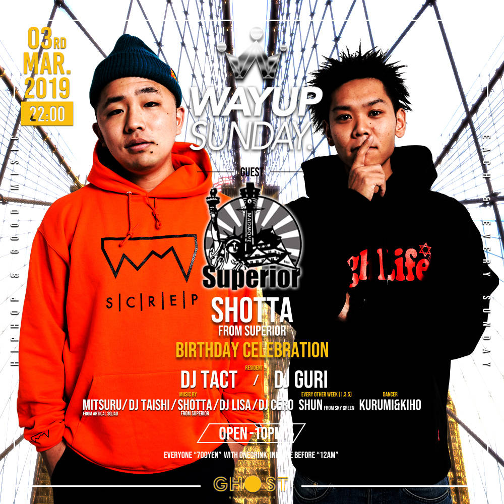 ユース・カルチャーの最先端はアメ村にあり!次世代を担うアクトたちが集い「今が旬」のミュージックを体感するならGhost ultra loungeの毎週日曜日「Way Up Sunday」!
