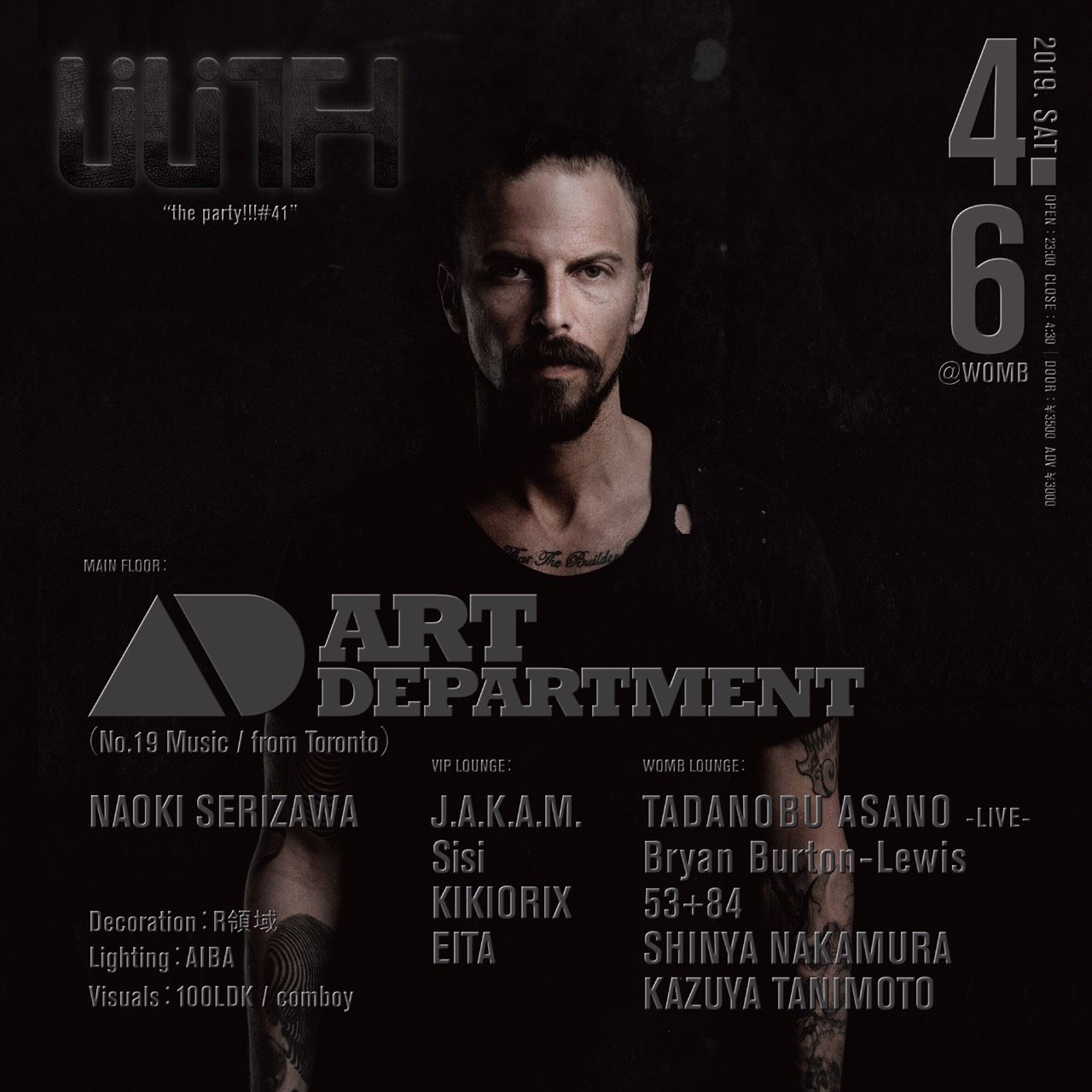 SOLOMUN や Jaime Jones など世界的トップ DJ を招聘し、前衛的なスクラップアートとヴィジュアル演出による独創的なパーティを展開する LiLiTH が1年ぶりに WOMB にカムバック。ゲストには、レーベル No. 19を主宰する世界的トップ DJ である ART DEPARTMENT (アート・デパートメント) が出演。Crosstown Rebels から発表したデビュー曲 “Without you” が、Resident Advisor、Groove Mag、beatport にて “Track of the Year 2011” を獲得。翌年発表した 1st アルバム “The Drawing Board” が iTunes の “Best Electronic Album 2011” にて2位を取得。DJ ランキングでは、Mixmag で過去最高2位 (2012)。Resident Advisor の読者投票の人気ランキングでは初登場6位 (2011) を記録。世界各地でヘッドライナーとして出演し、年間160本以上のギグをこなすスーパースターが LiLiTH に帰還し、3時間のロングセットを披露する。国内からは、CREW LOVE よりデビューを果たしヨーロッパやアジア諸国でギグを重ねる LiLiTH のレジデント DJ の NAOKI SERIZAWA が迎え撃つ。