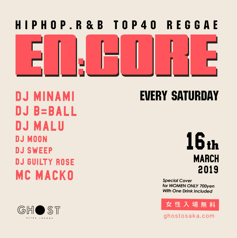 2017年現在も常時600人を超える集客で賑わう毎週土曜日、Ghost ultra loungeの看板イベント「EN:CORE」(エンコア)!