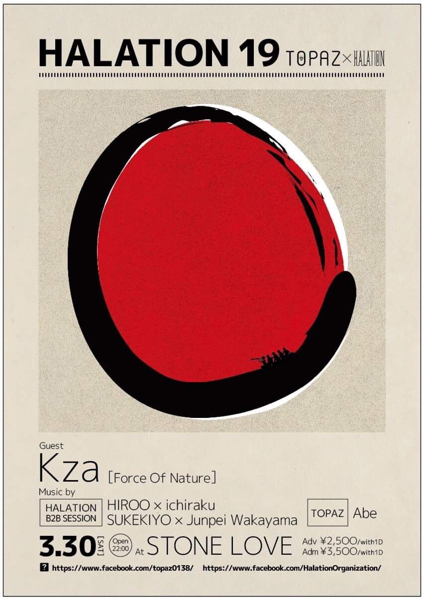 2019.03 30 MAR HALATION19 HOUSE DEEP HOUSE TECH HOUSE DISCO CROSSOVER 0 Shares Facebook Twitter google Line DATE: 2019-03-30 SAT OPEN: 22:00 VENUE: PRICE: ADV: ¥2500 DOOR: ¥3500 (1ドリンク付) LINE UP: KZA, HIROO, ichiraku, SUKEKIYO, Junpei Wakayama, Abe 函館StoneLoveで毎月開催されるパーティー【Topaz】と、毎回多彩なゲストを招きながら市内各地をホットスポットに変え続けるパーティー集団【HALATION】がタッグを組んでのHALATION19! Guestには今や日本を代表するダンスDJユニットとして世界を股にかけて活躍する【Force Of Nature】よりKzaが函館初登場です! 主催側も何が起こるか予測しきれないケミストリーな一晩を是非ご堪能しにいらしてください!