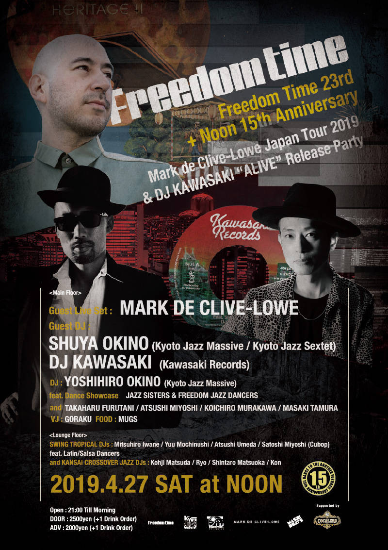 Liveには先日ニュー・アルバム”Heritage”をリリースしたMark de Clive-Lowe、そしてFreedom Timeでもお馴染み今年音楽生活30周年を迎える沖野修也、そして4月のレコード・ストア・デイに新作を発表するDJ KAWASAKIが登場します!