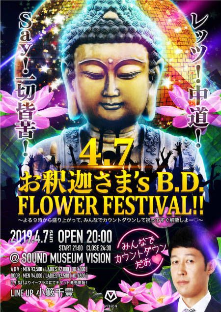 キリストの誕生日もいいけどブッダもね!ってことで…4月8日はお釈迦さまの誕生日!誕生日の瞬間をクラブでお祝いしよう!
