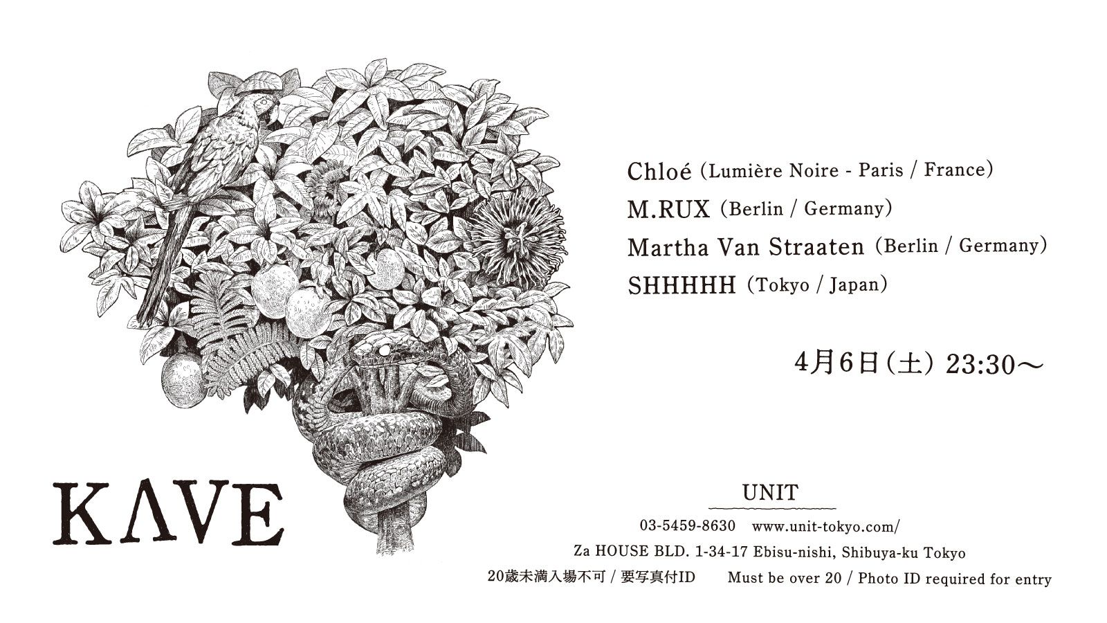 百戦錬磨のDJ達が集う舞台「KAVE」と共に、一晩の音旅行を楽しもう。