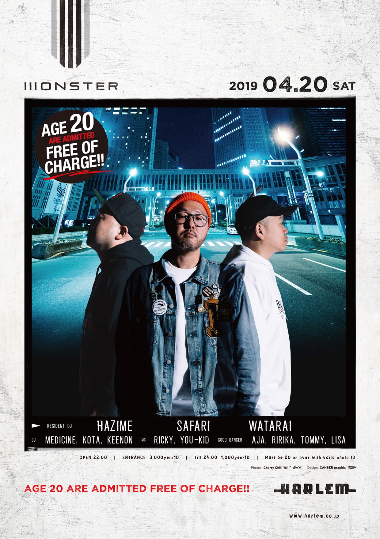 日本のHIP HOP SCENEを代表するDJが一堂に介する土曜日"MONSTER"。