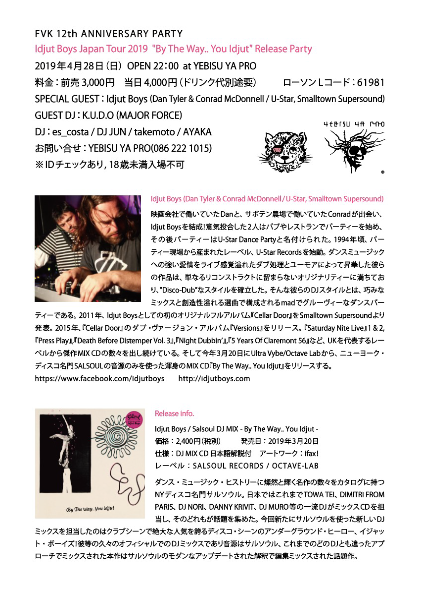 FVK 12th ANNIVERSARY PARTY Idjut Boys Japan Tour 2019 - “By The Way.. You Idjut” Release Party -