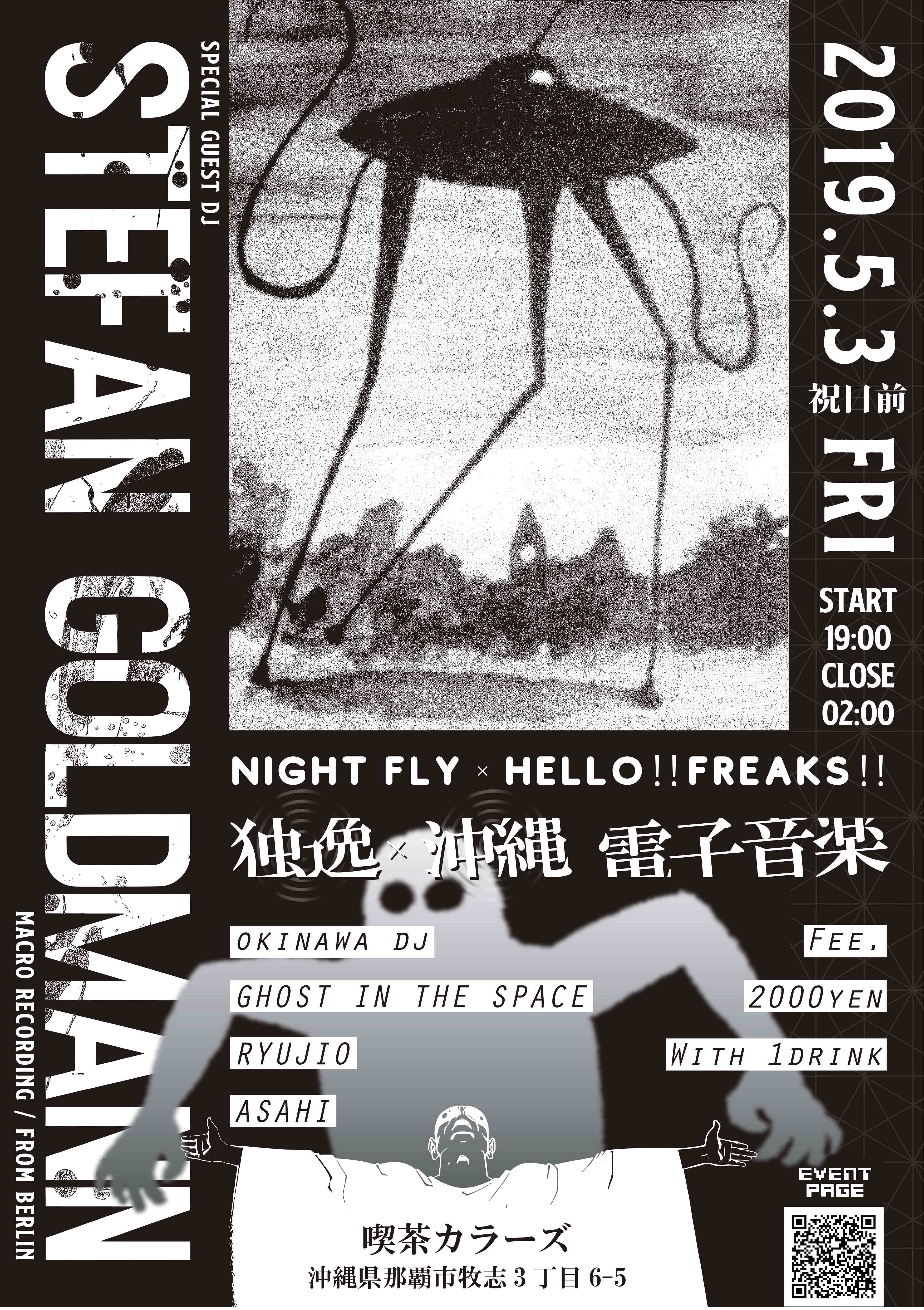 2019.05 03 MAY Stefan goldmann asia tour 2019 TECHNO 0 Shares Facebook Twitter google Line DATE: 2019-05-03 FRI OPEN: 19:00 VENUE: PRICE: 2000yen with 1 drink LINE UP: Guest dj STEFAN GOLDMANN macro recording / from BERLIN okinawa dj Ghost in the spece / yajiro Ryujio / NIGHT FLY Asahi / HELLO!!FREAKS!! NIGHT FLY × HELLO!!FREAKS!! feat. STEFAN GOLDMANN macro recording / from BERLIN okinawa dj Ghost in the spece / yajiro Ryujio / NIGHT FLY Asahi / HELLO!!FREAKS!! FEE ¥2000 / With 1Drink at 喫茶カラーズ 沖縄県那覇市牧志3丁目6-5 OPEN 19:00 CLOSE 02:00