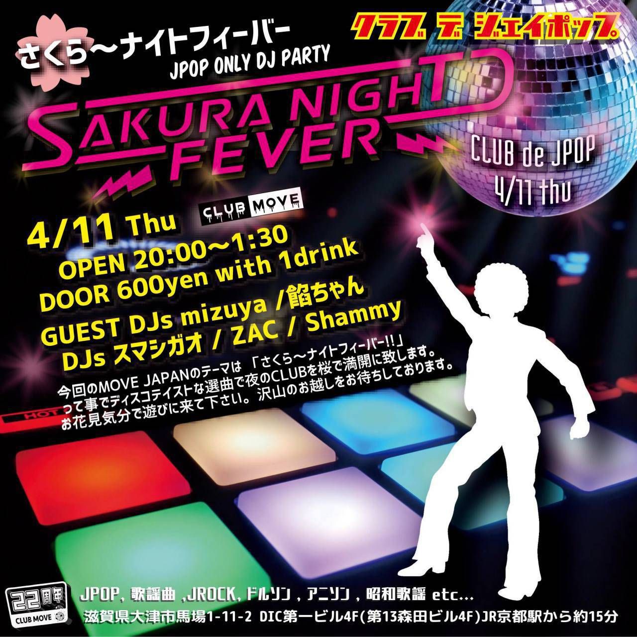 今回のMOVE JAPANのテーマは 「さくら~ナイトフィーバー!!」 って事でディスコテイストな選曲で夜のCLUBを桜で満開に致します。