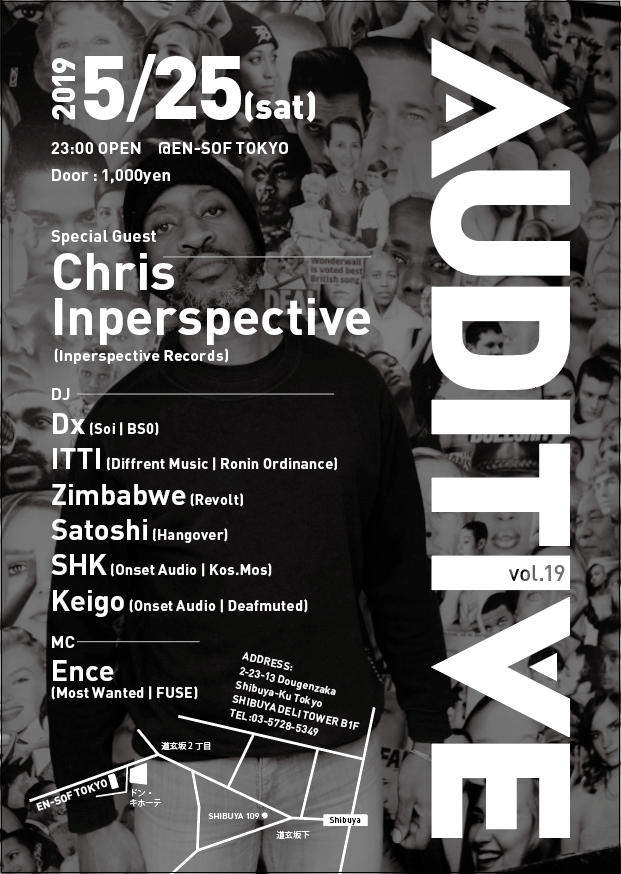 En-Sof Tokyoを拠点に多彩なベースミュージックを心地よい空間と音響でお届けするイベントAuditive。第19回目となる今回は、90年代後半からドラムンベース/ジャングルのシーンで活動しているChris InperspectiveがUKより初来日。アンダーグラウンドなドラムンベースサウンドを追求しているInperspective Recordsのオーナー、そして長年に渡りロンドンで開催しているイベントTechnicalityのオーガナイザーとしてシーンに貢献しているChris Inperspectiveのプレイは見逃せない。