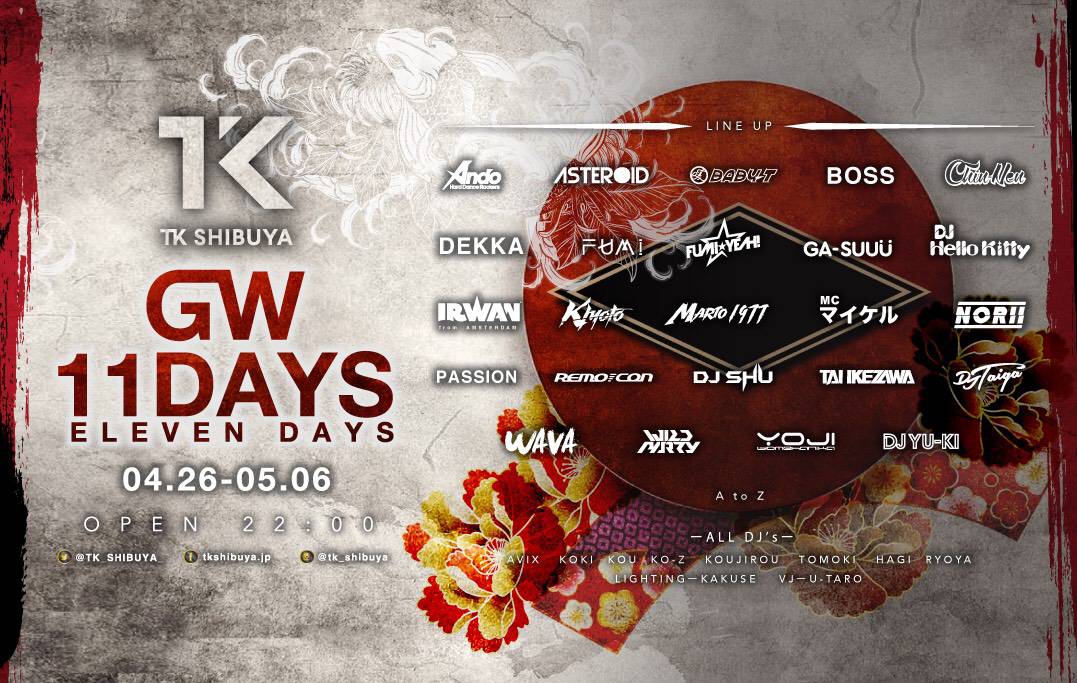 平日ながら多彩なGUEST DJ’sとTK RESIDENTによる人気イベント!音楽性を追求し、週末さながらの勢いのある踊れるパーティーを実現!一度来ればハマる事間違い無し!
