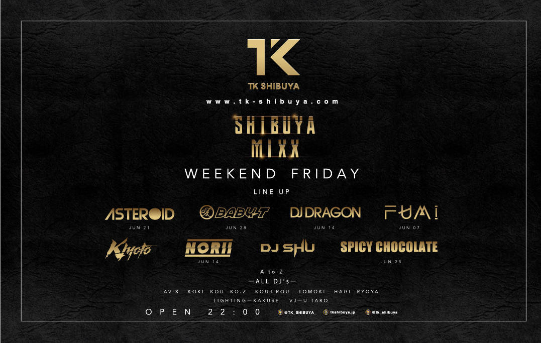 毎週末開催!TK SHIBUYAが誇る週末看板パーティー!