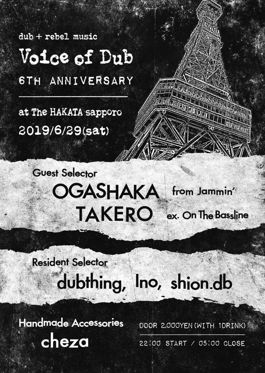 ゲストセレクターに、Jammin'メンバーで"猿の谷渡"や"sky walkin'"でもドープなダブサウンドを鳴らすOGASHAKA。2017年に活動を終えたレゲエクルーOnTheBasslineより、キラーなダブサウンドを追求するTAKERO。