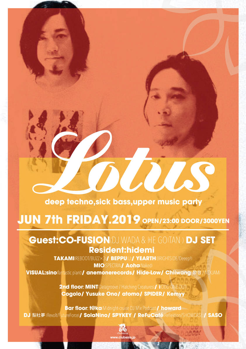 今回はBassフロアを1階Barフロアに配置し、ラウンジにシフトしたdrum'n bassを展開する。ベースミュージックの攻撃的なイメージでなく、メロウで哀愁を感じるような大人のサウンドで、今までのLotusとはひと味違うBassフロアを感じてほしい。