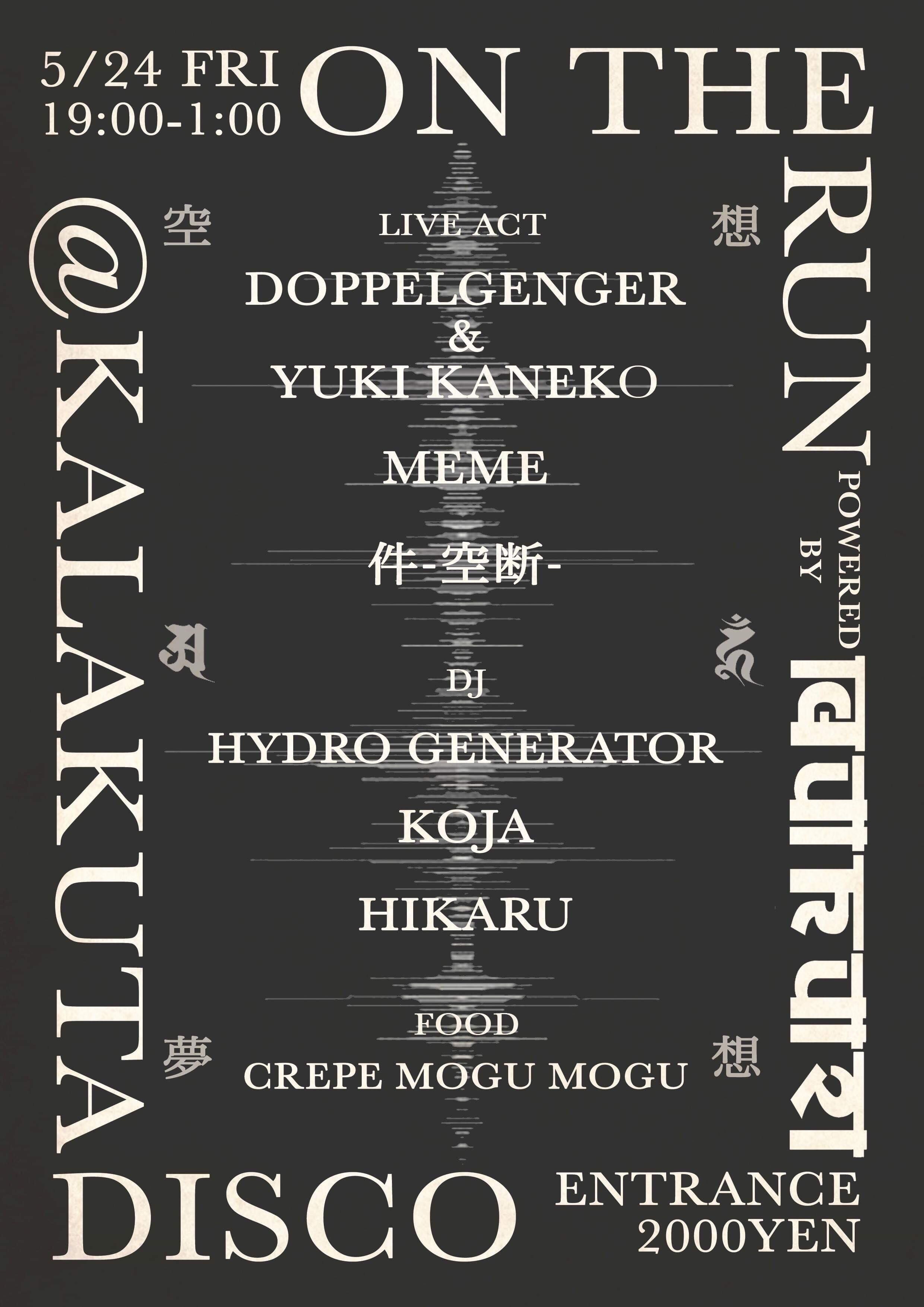 2019.05 24 MAY On the RUN TRANCE DUBSTEP ROCK 0 Shares Facebook Twitter google Line DATE: 2019-05-24 FRI OPEN: 19:00 VENUE: PRICE: ¥2000 LINE UP: Doppelgenger & Yuki Kaneko,件-空断-,meme,koja,Hikaru,Hydro Generator 5.24 FRI 19:00-1:00 On The Run @KALAKUTA DISCO ENTRANCE:2000YEN live act Doppelgenger & Yuki Kaneko 件-空断- meme DJ koja Hikaru Hydro Generator FOOD CREPE MOGU MOGU https://youtu.be/pMgLyc7G-4g