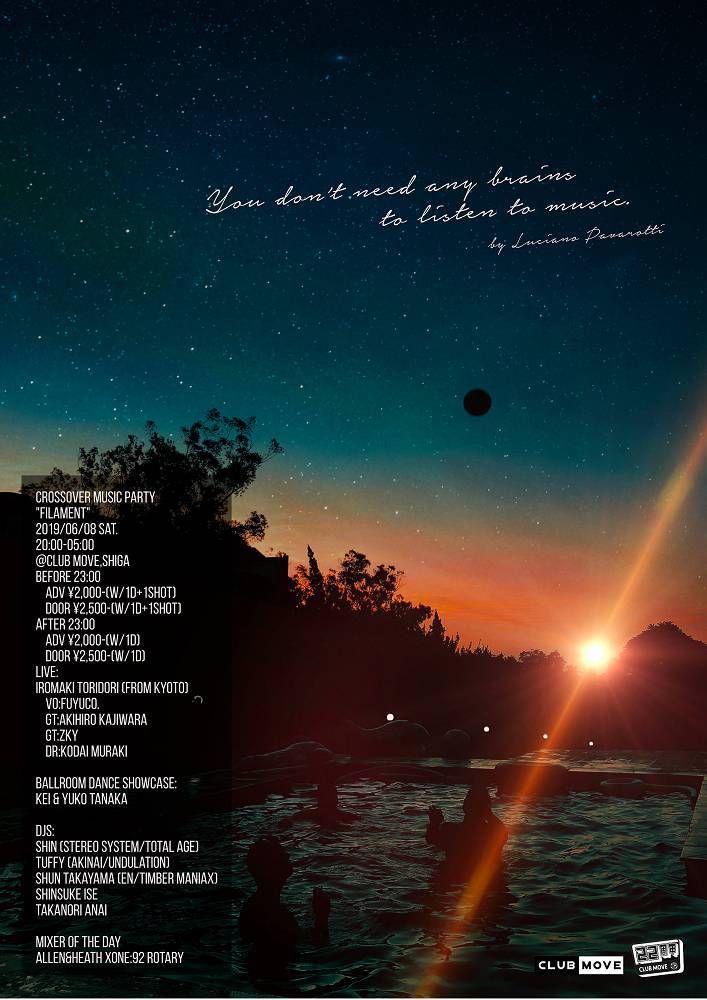 DJ : Shin(Stereo System/Total Age) / Tuffy (AKINAI/UNDULATION) / Shun Takayama(En/Timber Maniax) / Shinsuke Ise / Takanori Anai