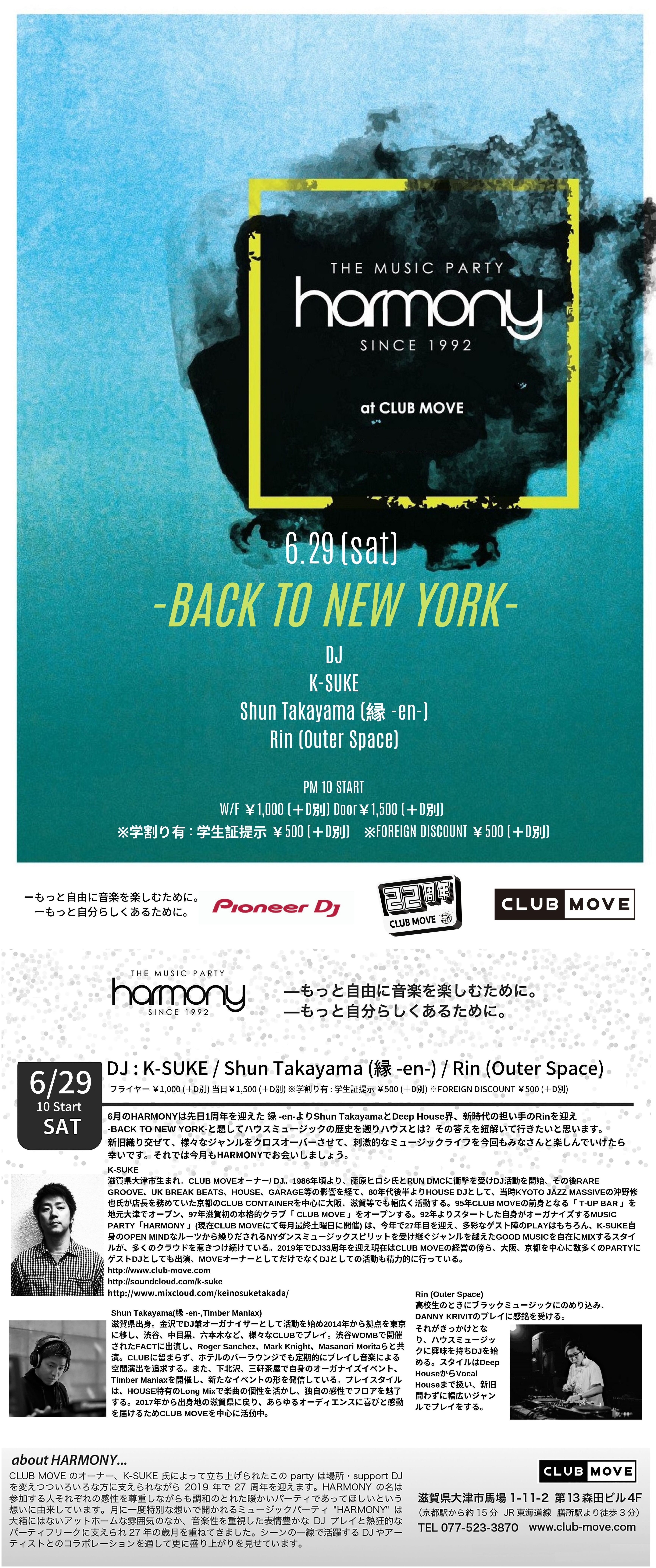 6月のHARMONYは先日1周年を迎えた 縁 -en-よりShun TakayamaとDeep House界、期待の担い手のRinを迎え-BACK TO NEW YORK-と題してハウスミュージックの歴史を遡りハウスとは?その答えを紐解いて行きたいと思います。