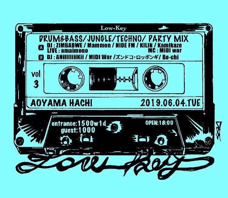 2019.06 04 JUN Low-Key DRUM&BASS OTHER 0 Shares Facebook Twitter google Line DATE: 2019-06-04 TUE OPEN: 18:00 VENUE: PRICE: DOOR: ¥1500/1d LINE UP: -Main DJs- ZIMBABWE Mammon HIDE FM KILIN Kamikaze -Live- amaimono -lounge DJs- ANiIIIIiiiKii MIDI War ズンドコ・ロッポンギ Ro-chi