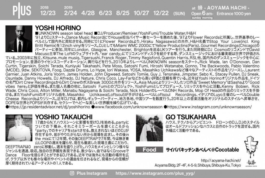 青山蜂にサンデーモーニングとして"Plus"が新たなるカタチでOpen。