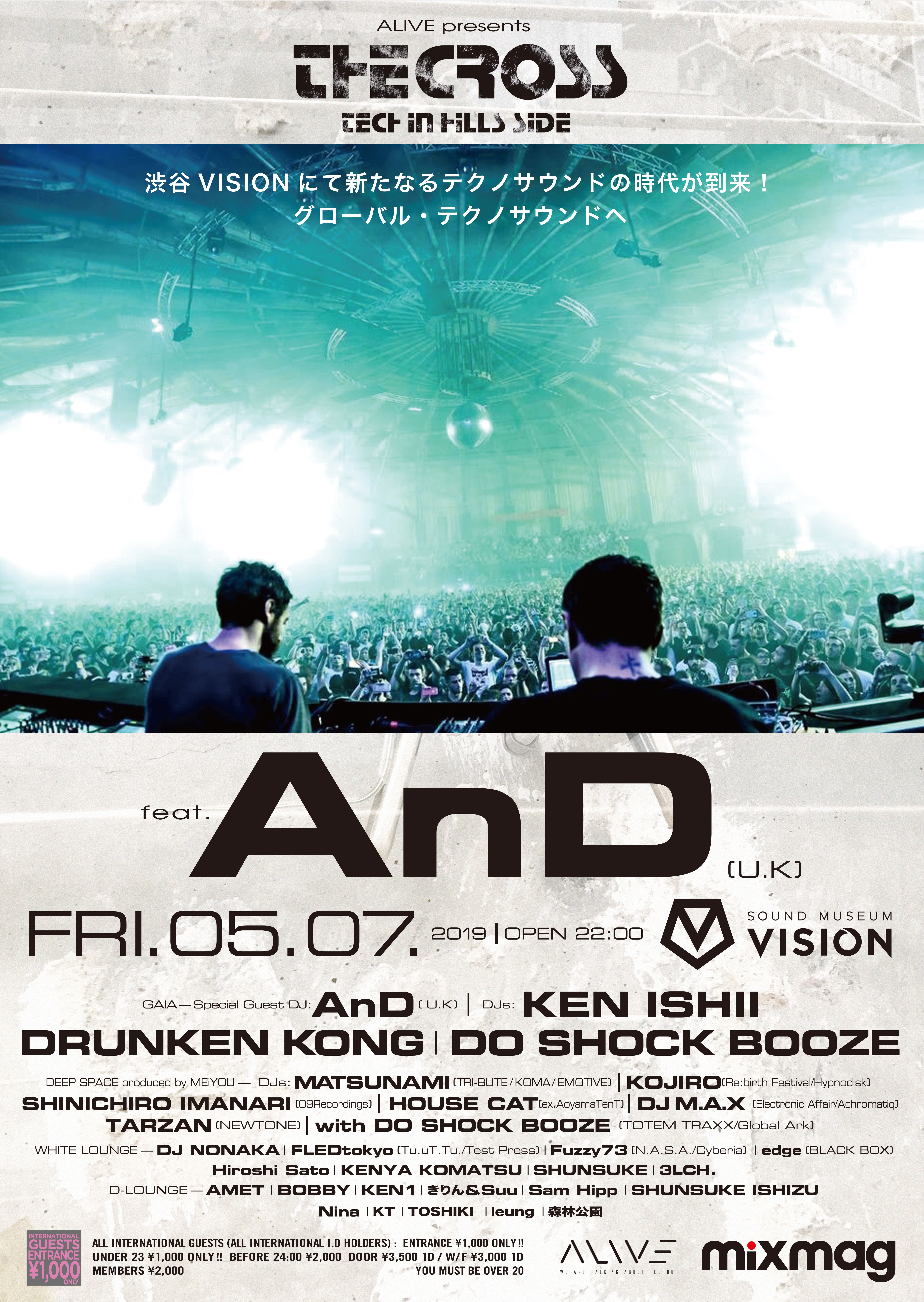 記念すべき、第一回目は、言わずと知れたテクノ世界最高峰の祭典であるオランダ“AWAKENINGS”にてレギューラー出演し、ドイツ“Berghain”、オランダ“Unpolished”などハードテクノ界のフェスやパーティーにおいて、今や欠かす事が出来ない存在となっているイギリス・インダストリアルの地、マンチェスター出身のテクノ・デュオ“AnD”が登場。国内サポート陣には我々が絶対的に世界に誇るメンバーで当然ながら妥協はない。世界のテクノシーンにおいてももはや欠かす事が出来ないであろう、テクノゴッドKEN ISHII、現在、DJ、楽曲制作共に内外での活躍はトップレベルの筆頭である、DRUNKEN KONG、また、東京テクノシーンで90年代前半よりレイブシーンを通じテクノDJ/プロデューサーとして活躍する、Do Shock Boozeがオープンより皆様を心地よく未体験ゾーンに連れて行ってくれる一夜になる事間違いないだろう。