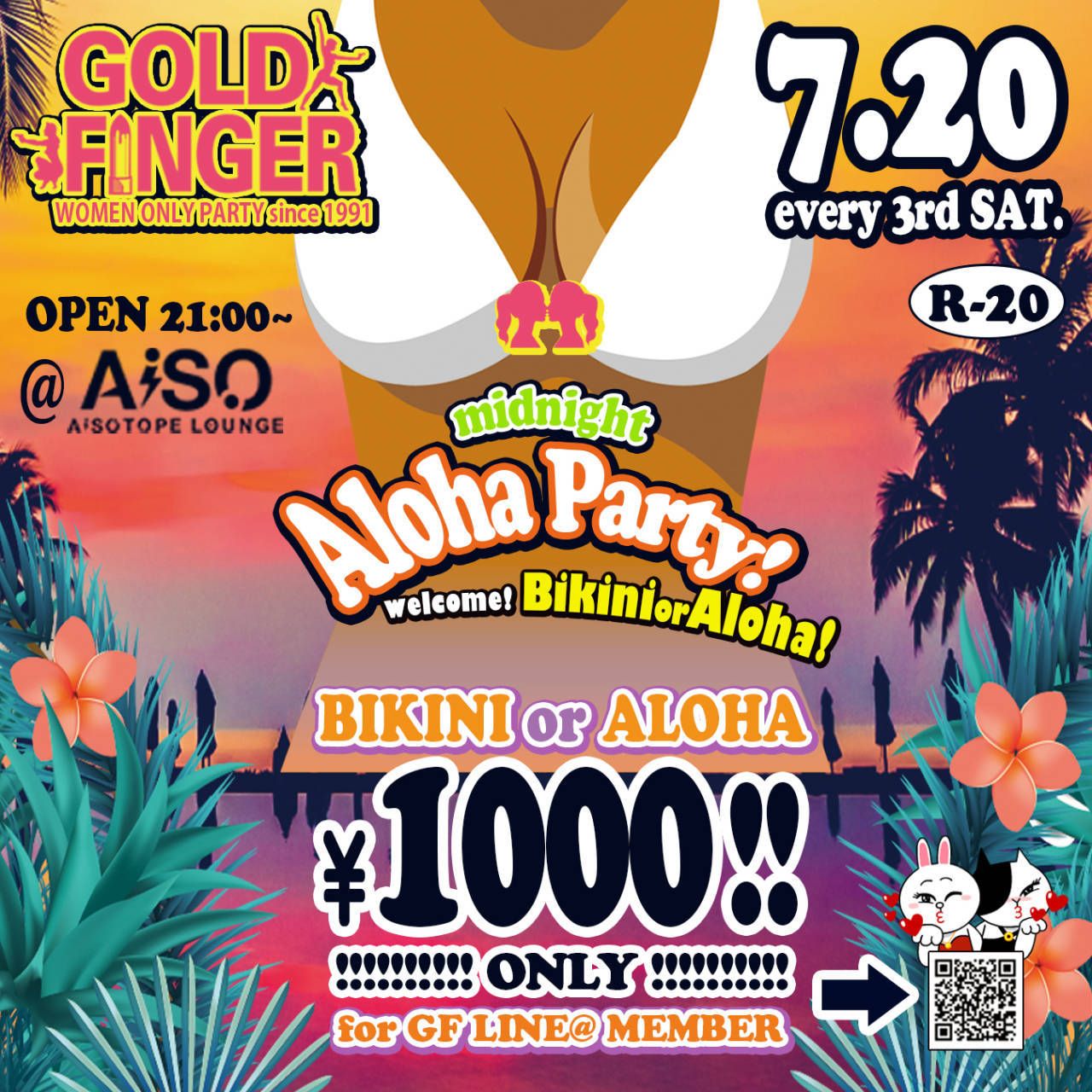 7月は~midnight ALOHA party~。毎年恒例みんな大好きビキニナイト!