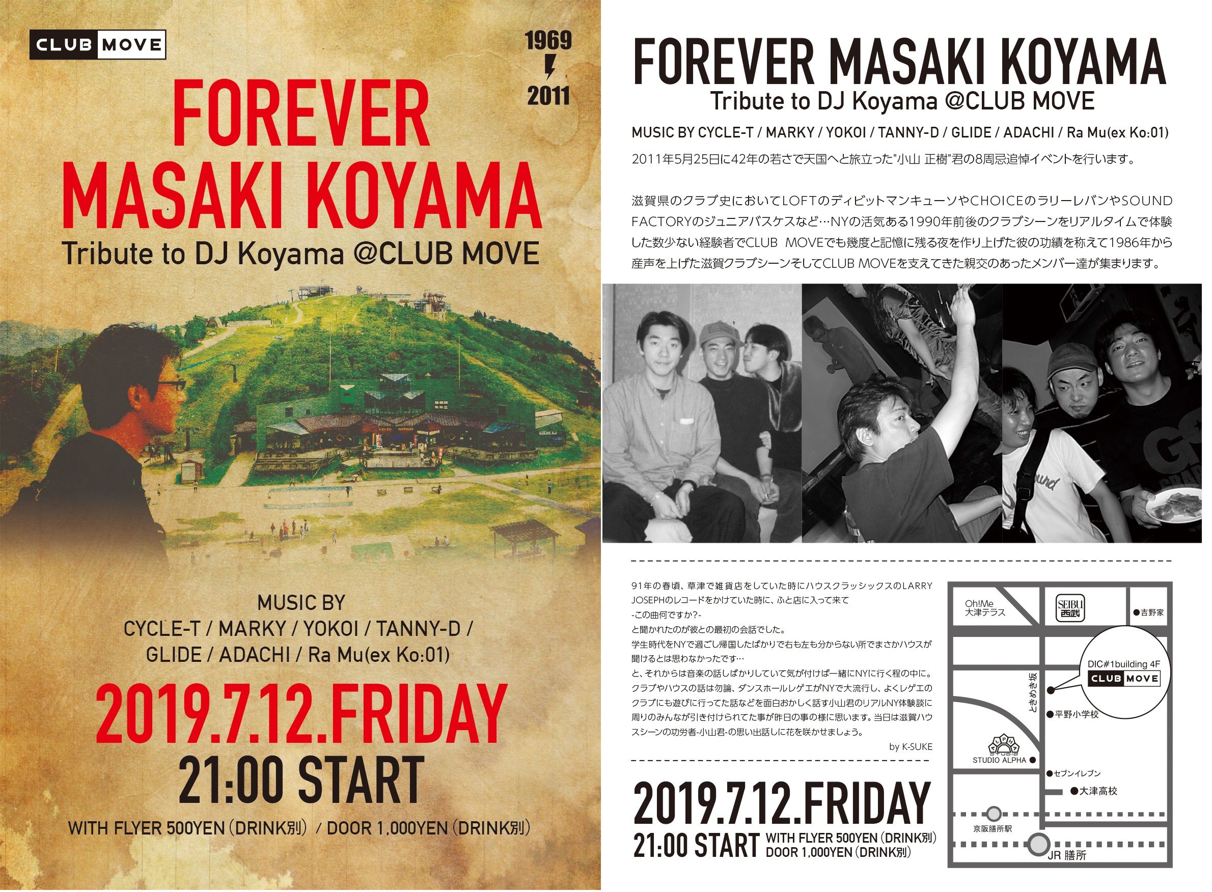 2011年5月25日に42年の若さで天国へと旅立った "小山 正樹" 君の8周忌追悼イベントを行います。滋賀県のクラブ史においてLOFTのディビットマンキューソやCHOICEのラリーレバンやSOUND FACTORYのジュニアバスケスなど…NYの活気ある1990年前後のクラブシーンをリアルタイムで体験した数少ない経験者でCLUB MOVEでも幾度と記憶に残る夜を作り上げた彼の功績を称えて1986年から産声を上げた滋賀クラブシーンそしてCLUB MOVEを支えてきた親交のあったメンバー達が集まります。