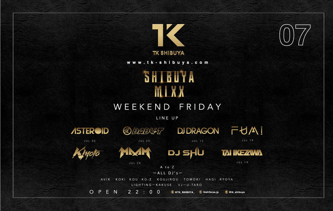 毎週末開催!TK SHIBUYAが誇る週末看板パーティー!