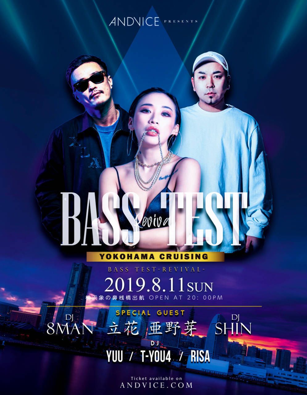 今回は夏クル全面バックアップのもと、派手なセットに加え、トリッキーなDJ陣が真夏の夜を盛り上げます。そして、象の鼻発着場すぐそばにある「象の鼻テラス」にもご協力いただき、クルージング前の夕方から、思う存分に夏を楽しめるパッケージも用意しております。※詳細別リンク参照→http://andvice.com/basstest/